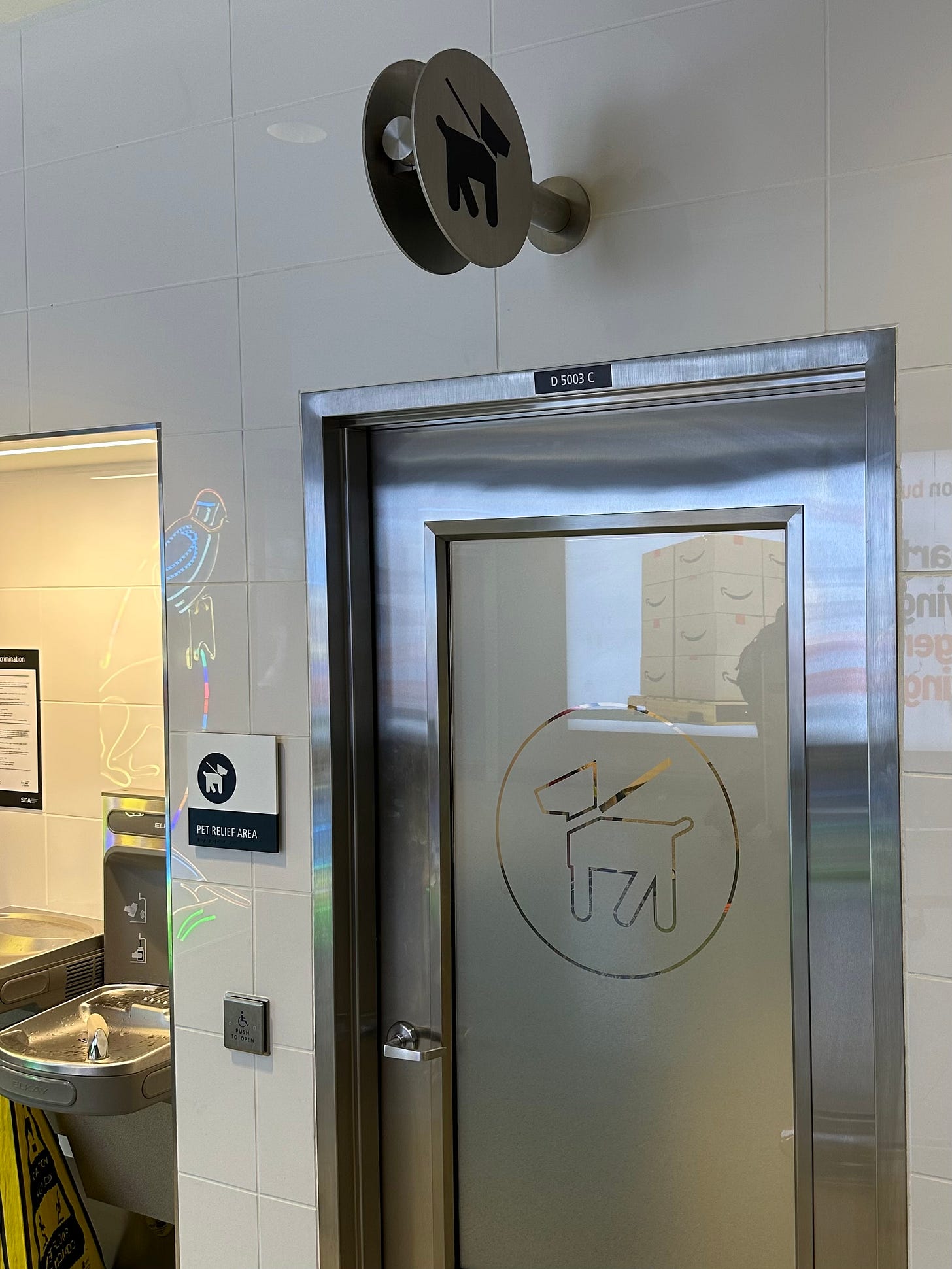 I saw a woman walking through baggage claim with a Palestinian flag, tampons in the men’s bathroom and a new facility for doggie defecation. No one seemed bothered. They just continued on their way, keeping whatever thoughts they had to themselves.